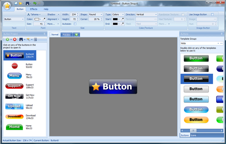 Это программа для создания кнопок, которые могут быть использованы в различных приложениях Web. Для работы с Button Shop не требуется специальных знаний HTML и javascript.